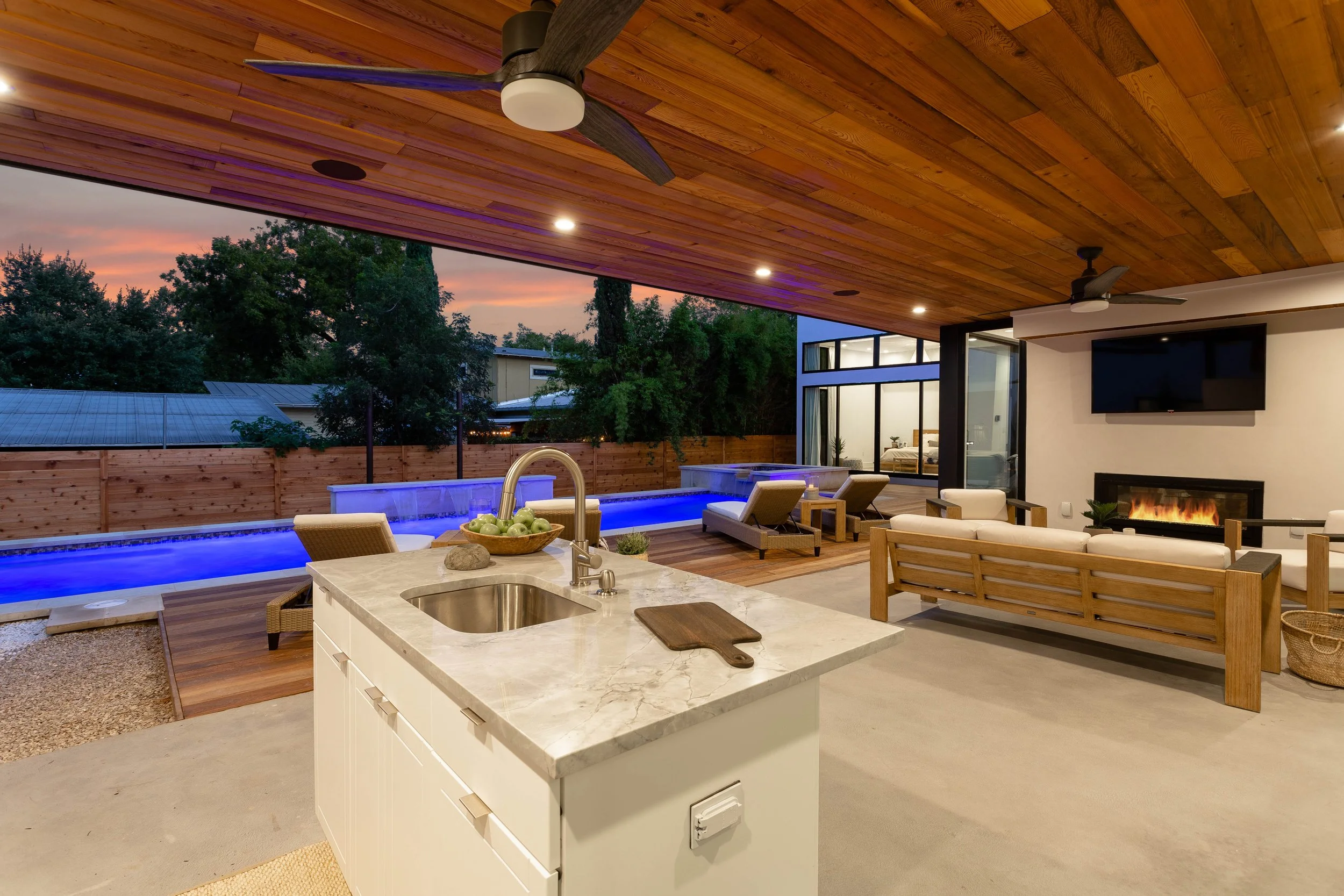 Ashby is a 5000sf house with a detached guest house that forms a courtyard surrounding a pool. Designed for a local real estate developer and his newly wed, the house also has a rooftop terrace with a view of the city of Austin. As with most houses we like to create a sense of an indoor outdoor environment given the climate of central Texas.
