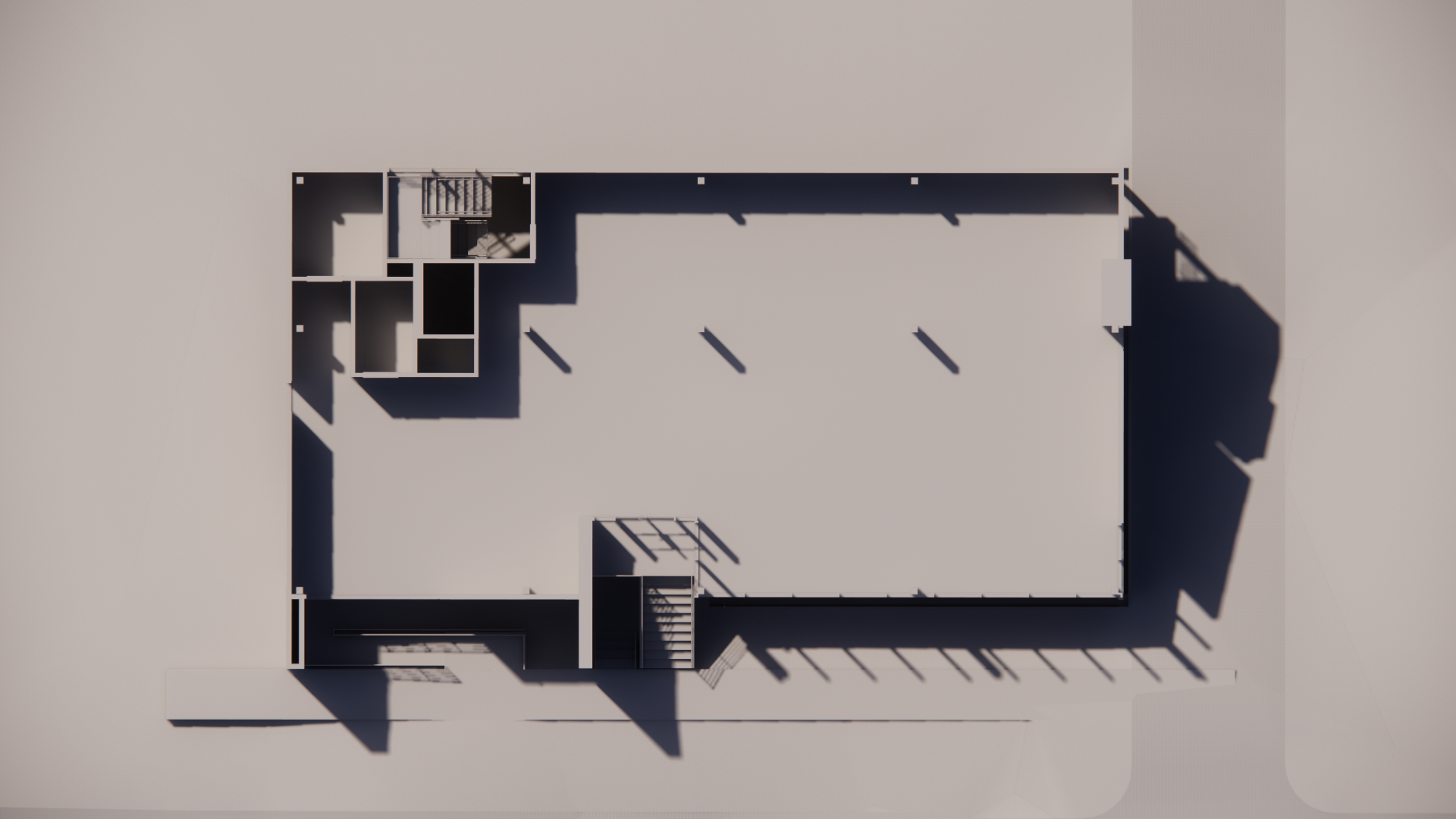 It was a unique request to combine a gallery space with a living suite. Situated in downtown Austin, spanning a floodplain and across from one of the city's former tourist attractions, the Graffiti Park (now defunct), added to the project's distinctive setting. The design included a living, dining, and kitchen area alongside three bedrooms, complemented by a spacious terrace offering views of the city skyline. The structure took the form of a simple, elevated unit above a garage, strategically positioned above the floodplain.