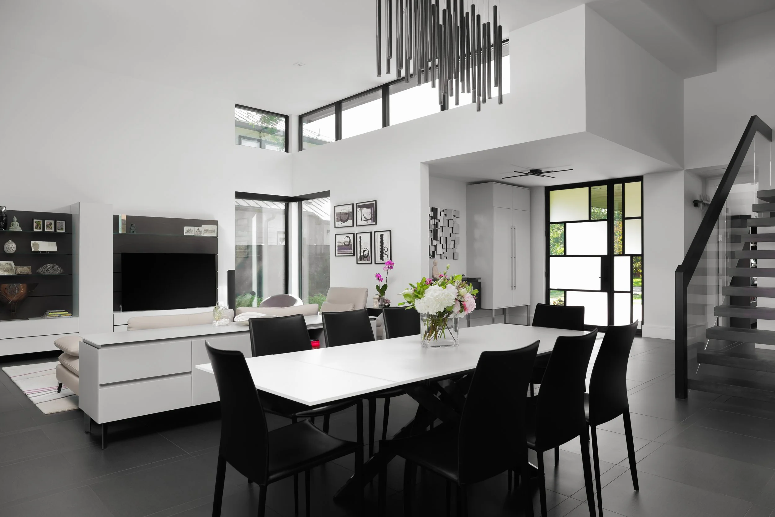 Nasco was a delightful collaboration between homeowners and architects. Nestled in the Allendale neighborhood, this residence is a straightforward assembly of cubic forms arranged to encircle a particularly unique central volume housing the living, dining, and kitchen areas. Indeed, the essence of every home lies in its gathering space, where interaction and comfort naturally converge.