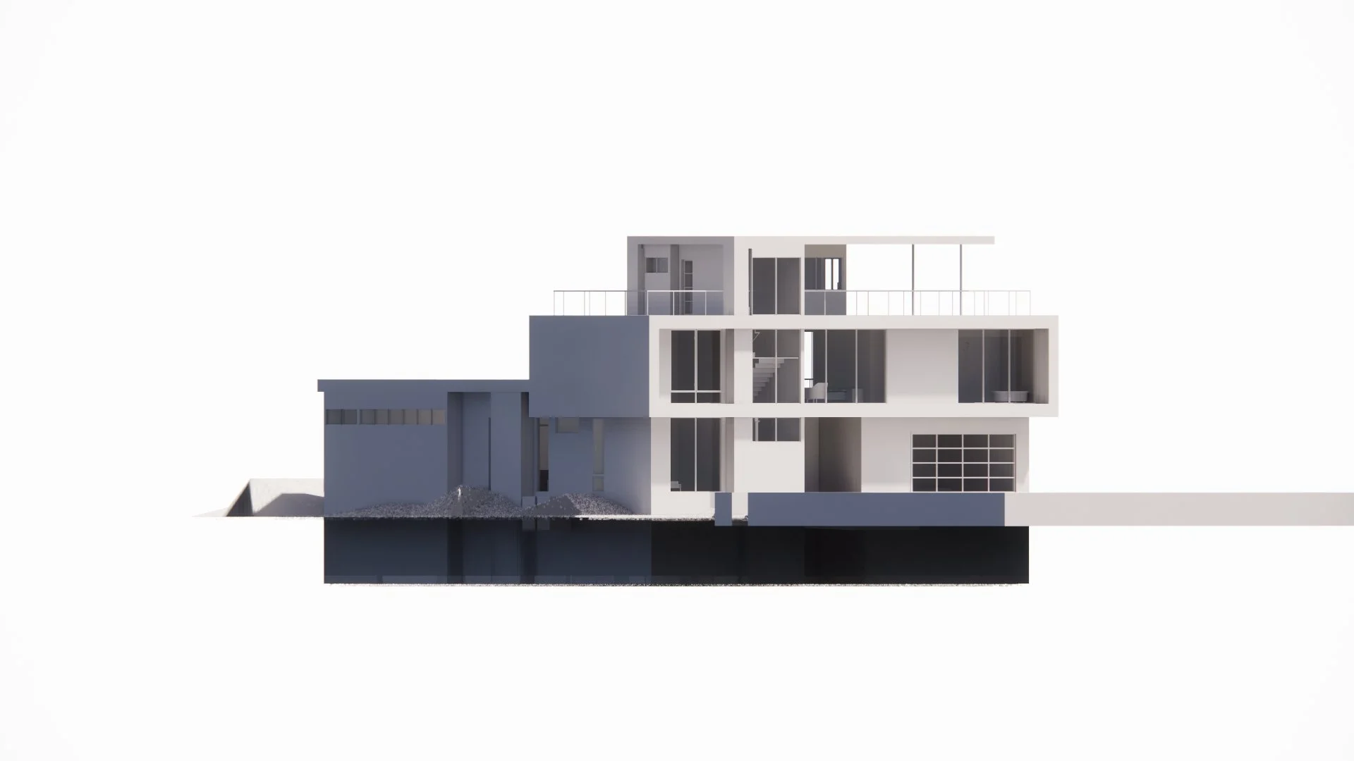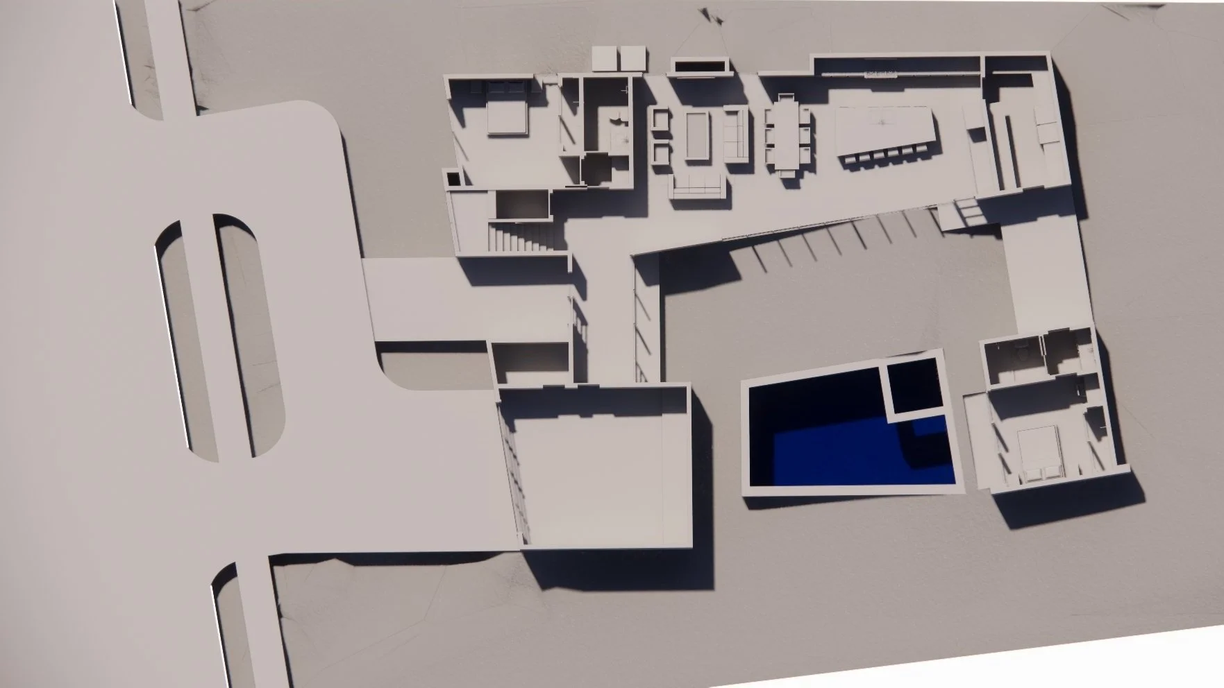 West Mary, situated in South Austin, offers an exceptional city view, particularly from the rooftop terrace on the third level. The lot's parallelogram shape dictated that the plan align closely with the lot and setback lines, resulting in a layout that maximizes privacy. This configuration creates a secluded courtyard featuring a cabana and pool, complemented by a striking rooftop terrace that affords panoramic vistas of downtown Austin. Careful attention was given to crafting a street-facing facade that appears to float, enhancing the architectural composition of the residence.